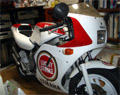 | SUZUKI GSX750(T型)と比較する為に購入しました。セイバーとは洋刀という意味。日本刀とはまた違う乗りごこちです。デジパネで面白かったんですが、今は岡山で冬眠中(8年目)。GSX750は家内の手に掛り、8年前に現金と1/25のプラモデルに変身。 |